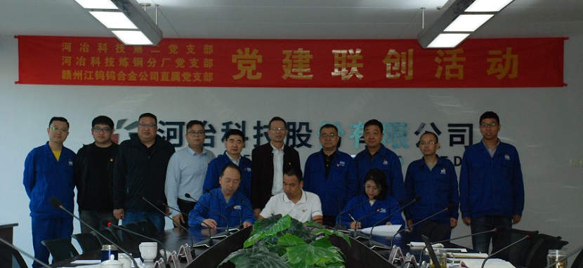 參加本次黨建聯創活動的有河冶科技黨委副書記、總經理侯致平,黨委副書記、常務副總經理梁敬斌、工會主席趙金伶,采購部部長張國平,贛州江鎢鎢合金公司黨支部書記、董事長肖光彬,副總經理連文學一行四人。參加會議的還有第二黨支部書記、煉鋼分廠黨支部書記等四人。